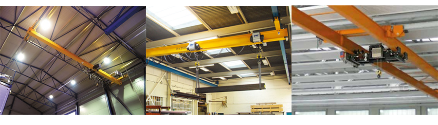? 單梁懸掛起重機的大車車輪是倒掛在工字鋼軌道上行走,最大噸位可達20t,當廠房空間設計有限時,可選用單梁懸掛起重機。